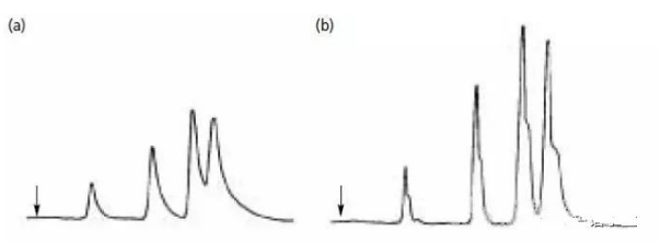 例如,c-r3a数据记录仪上的一般记录时间间隔GC为2MS,HPLC为5MS,如果记录间隔时间缩短,一个峰将变为二个峰或更多。