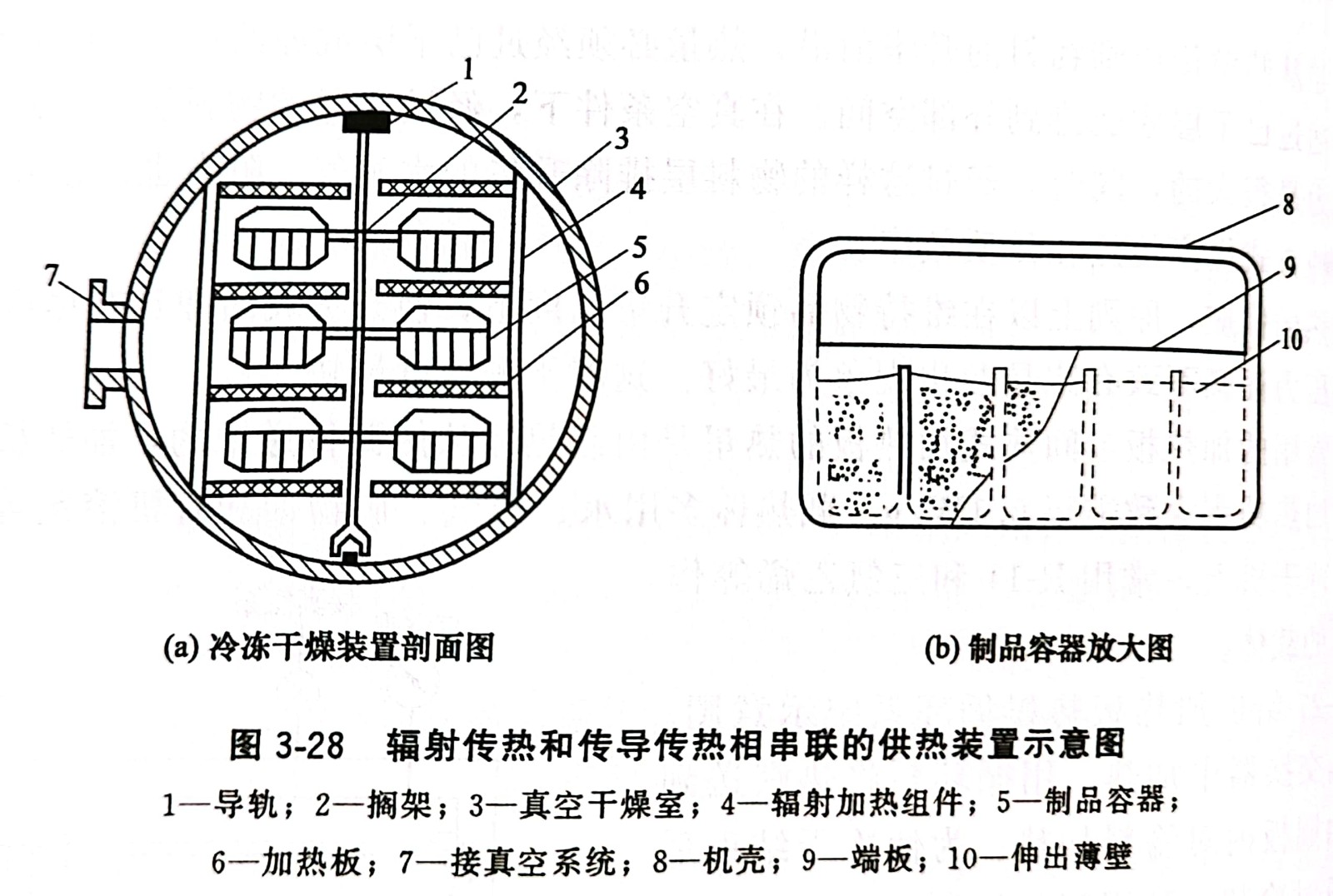 供给升华热的热源应能保证传热速率满足冻结层表面既达到尽可能高的蒸气压,又不致使其熔化。