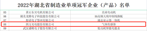 - 四方光电获评“2022年湖北省制造业单项冠军企业”
