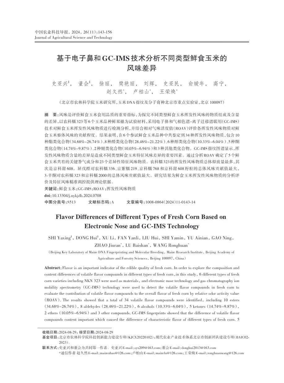 基于电子鼻和GC-IMS技术分析不同类型鲜食玉米的风味差异---AIRSENSE电子鼻