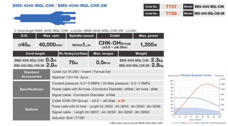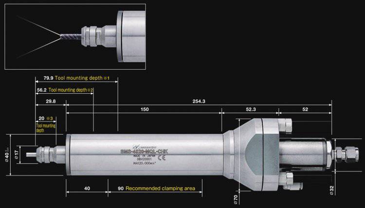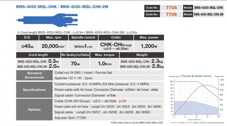 日本NAKANISHI中心通孔型马达主轴BMS-4020-MQL-CHK在马达主轴BMS-4020的基础上配有内部冷却系统,改善了深孔钻削的碎屑排泄问题,提高了加工效率和刀具的寿命。 中心通孔型主轴BMS-4020-MQL-CHK这款细长的主轴头部设计用于加工深 孔和狭窄的空间环境,钻孔深度可达20mm。