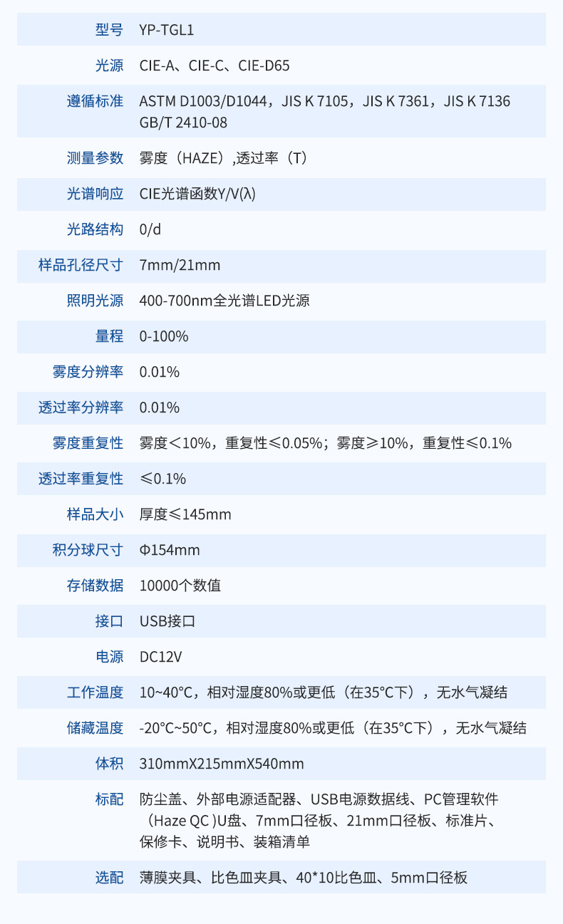 | 选配 | 测量夹具、雾度标准片、40*10比色皿 |