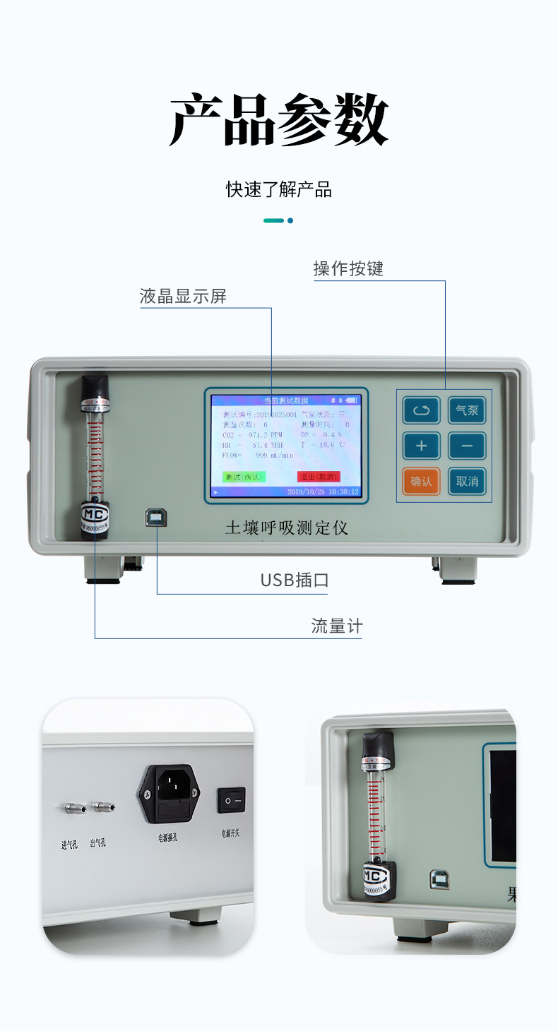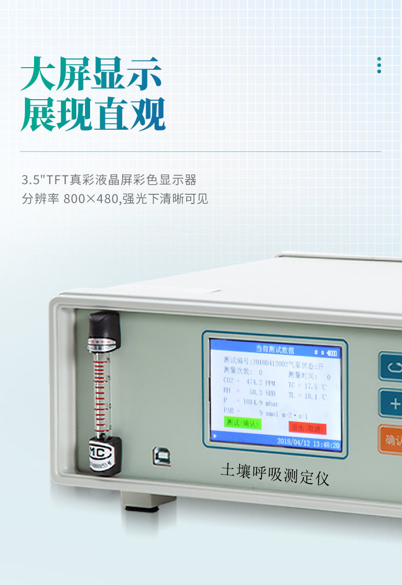 土壤呼吸是土壤生态系统碳素循环的一个重要过程,是土壤碳素同化异化平衡作用的结果,也是碳素由陆地生态系统返回大气的主要途径,是土壤中生命活动的表征,准确测定其释放量是评价生态系统中生物学过程的关键;通过对土壤呼吸及其相关参数的监测,可估测根系和土壤微生物对气候变化的响应。土壤CO2通量在时间和空间上受多种复杂物理和生物过程影响,长期、连续、准确的测量土壤碳通量,对陆地生态系统碳通量研究具有重要的意义。土壤呼吸测定仪可以同时显示呼吸室内部的CO2浓度、温度和湿度变化以及外部光合有效辐射强度。广泛应用于农业生态科研、碳源碳汇研究、全 球气候变化、土地利用方式改变、生态修复研究、土壤微生物活力评估、植物生态研究、昆虫呼吸、根系呼吸以及水果贮藏。