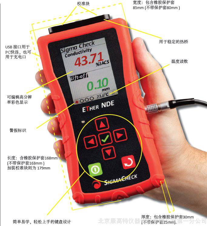 | 电导率范围 | 0.5%IACS至110%IACS,0.28-64MS / m |