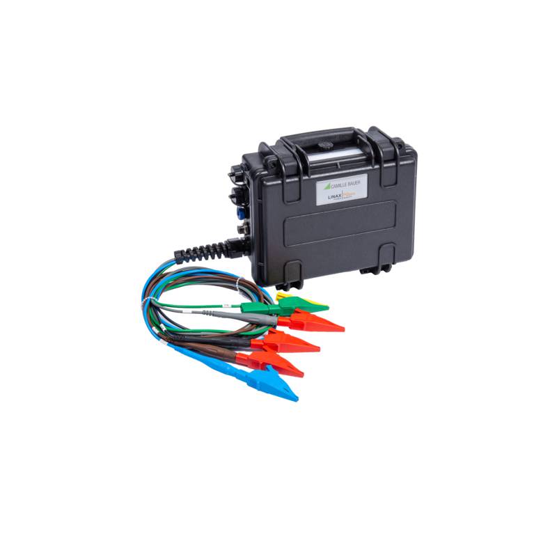 Linax PQ5000移动设备安装在一个坚固防水的可锁定外壳中。单独的电流测量通过电流钳组或罗氏线圈进行。电压通过带保险丝的分接头直接测量。作为可订购选项,可添加GPS时间同步1/3,以显示具有正确时间戳的现场测量数据。