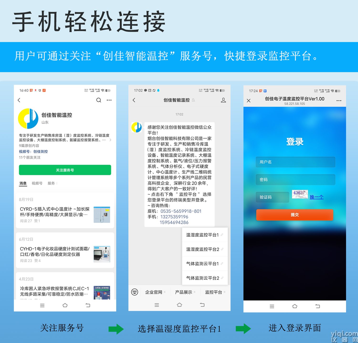 CYCW-402S型智能温湿度采集器支持4G传输,多点温湿度测量,防水防潮,适用于食品加工、冷藏库、保鲜库、医药、农业大棚等。 1、采用4G网络传输,赠送8年流量; 2、可接入1-4个数字化温度探头(或1-3个温度加1个湿度探头),精度高,无须校准。每个探头都可单独设置上下限和零点校正。 3、需配合手机平台使用,手机登录查看实时、历史数据,可扩展紧急呼救报警功能。