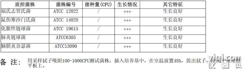 按标签用法制备培养基,接种以下质控菌株,放置20-25℃需氧培养48小时。