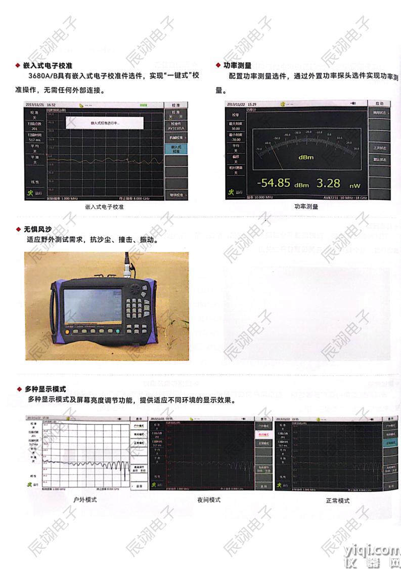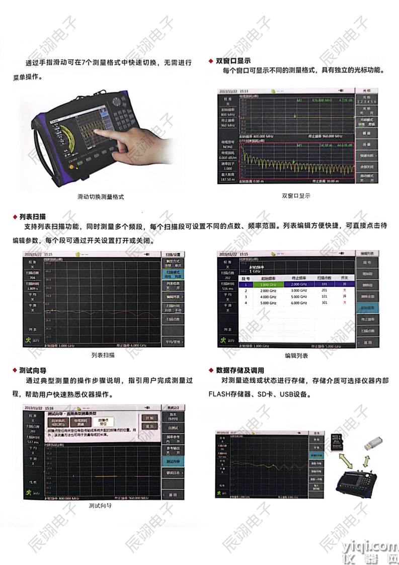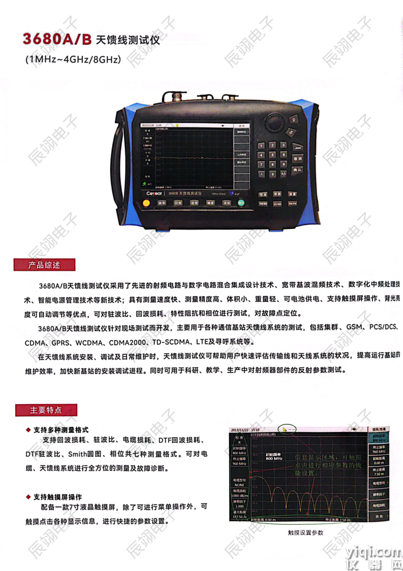 术等新技术;具有测量速度快、测量精度高、体积小、重量轻、可电池供电、支持触摸屏操作、背光亮度可自动调节等优点,可对驻波比、