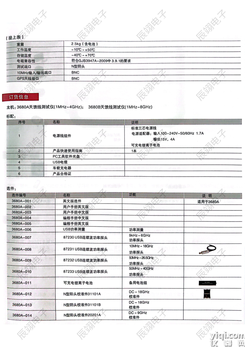 * 频率范围:1MHz~4GHz (3680A);