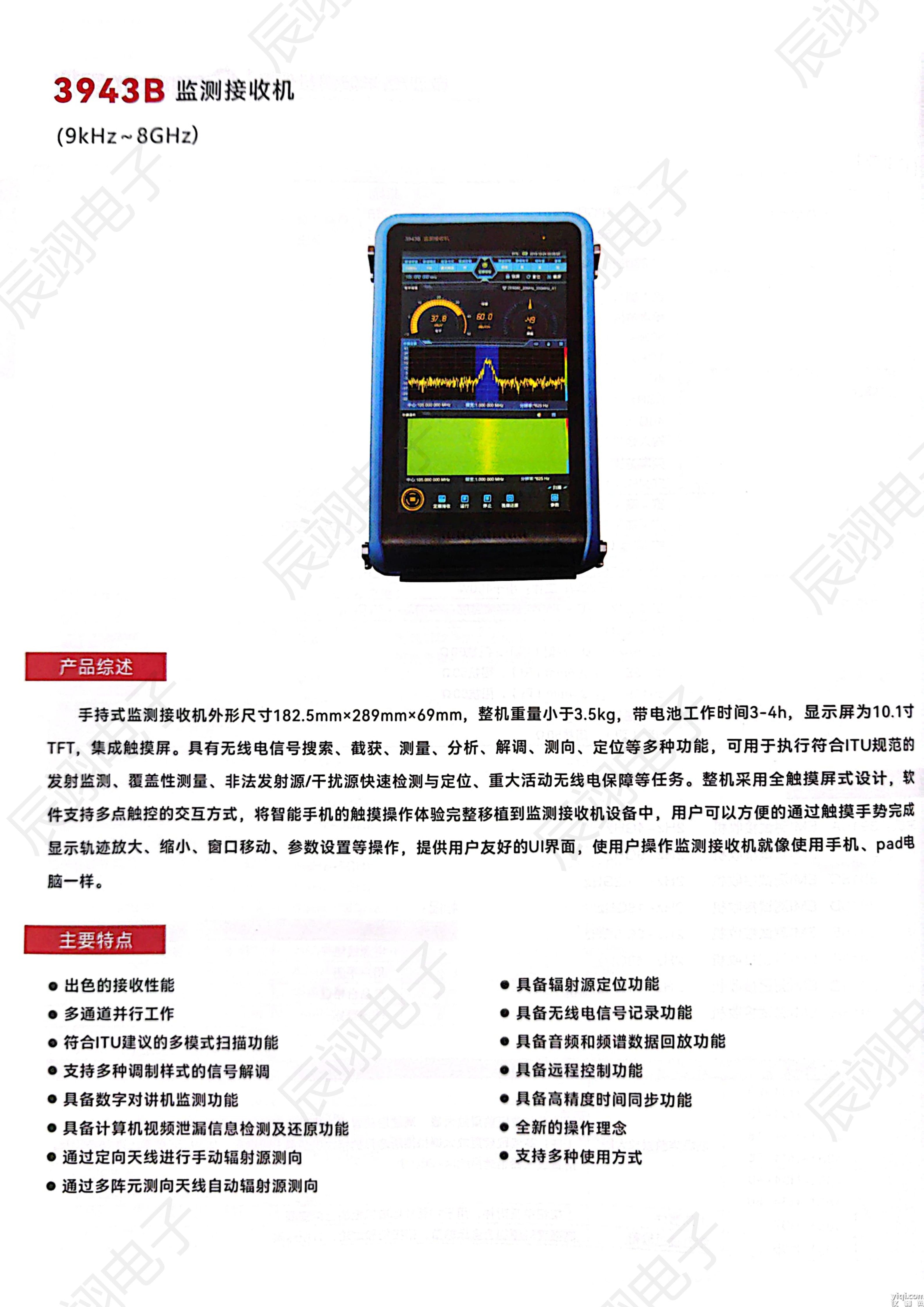 3943B设备体积小、重量轻,特别适合在重大活动中执行无线电保障任务,快速发现隐患,保障无线电用频设备的正常工作。