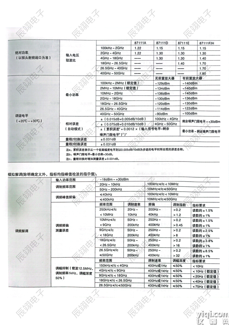 绝对功率测量范围-20dBm~+30dBm、测量误差±0.42dB