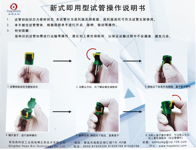 用途:用于需氧菌和真菌的培养,可立玻璃试管,可注射加样。
