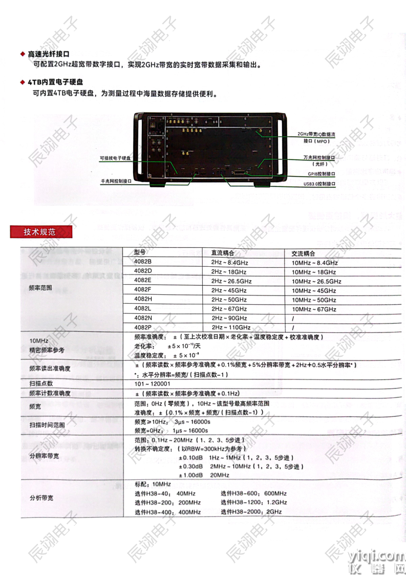 频输入1);4082前瞻性地配置了USB3.0控制接口,万兆网接口、2GHz带宽的IQ数据流接口等,可提供更高带宽、更快速率、更加稳定的数据传输,
