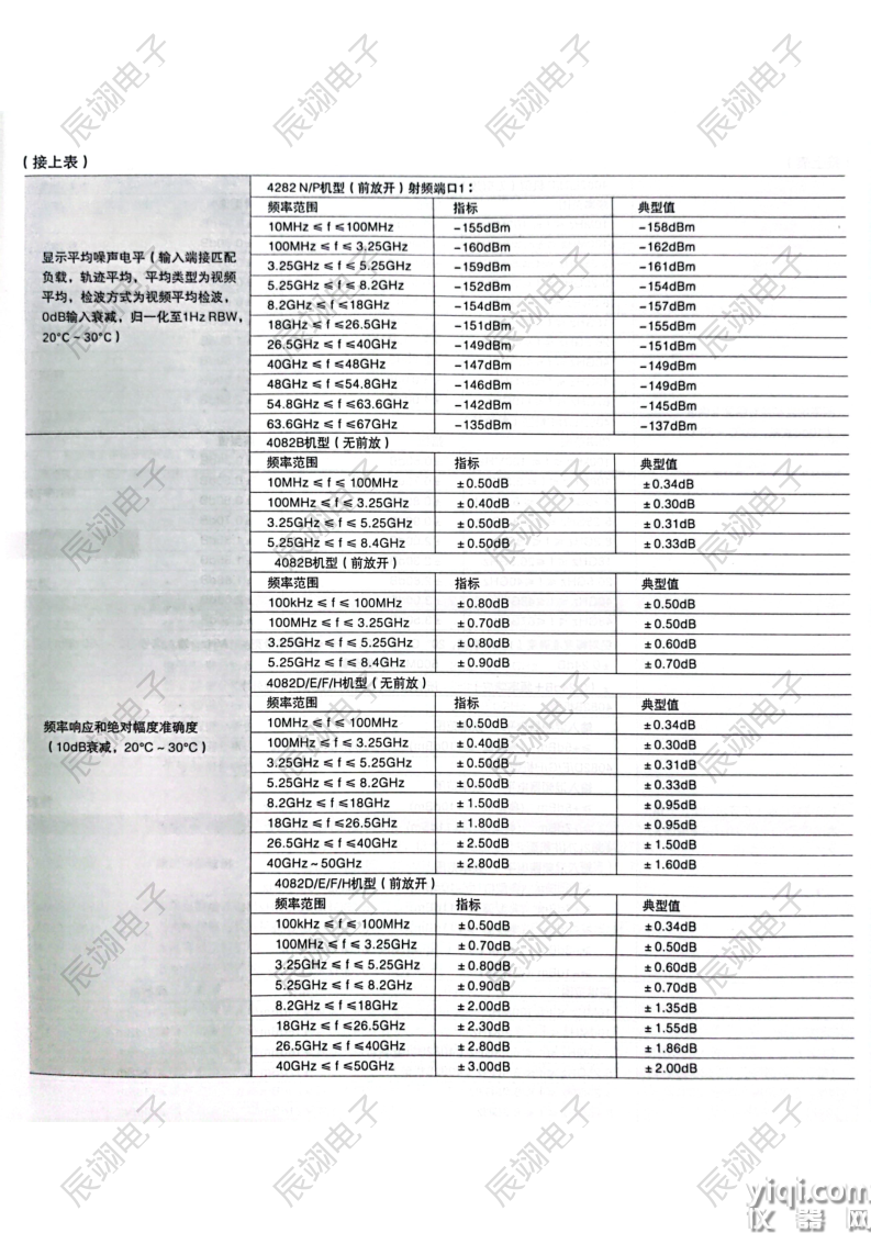 * 显示平均噪声电平:-167dBm/Hz(1GHz载波,前放开,典型值)