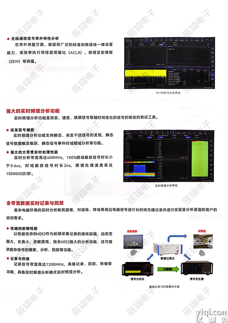 作为射频采集记录的接收前端,动态范围大,失真小,灵敏度高,结合Ceyear 4052强大的分析功能,还可提供复杂信号的搜索、分析、回放等功能。