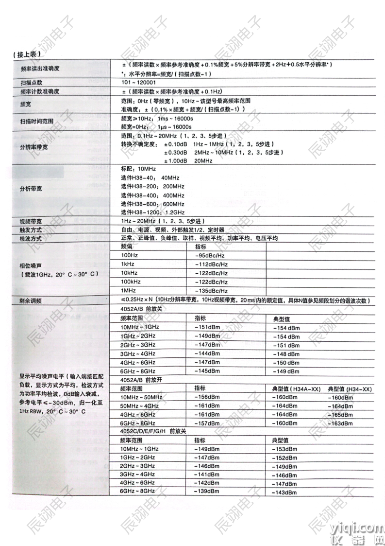 * 显示平均噪声电平:-165dBm/Hz(1GHz载波,前放开,典型值)