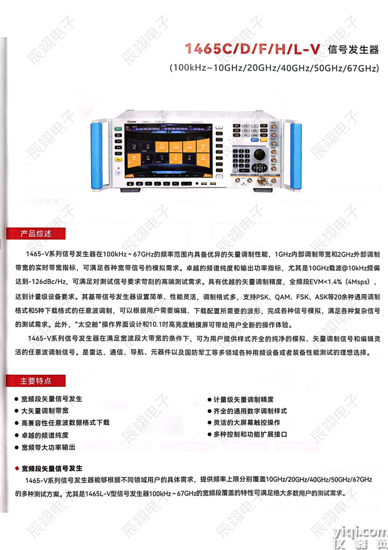 1465-V系列信号发生器在100kHz~67GHz的频率范围内具备优异的矢量调制性能,1GHz内部调制带宽和2GHz外部调制带宽的实时带宽指标,