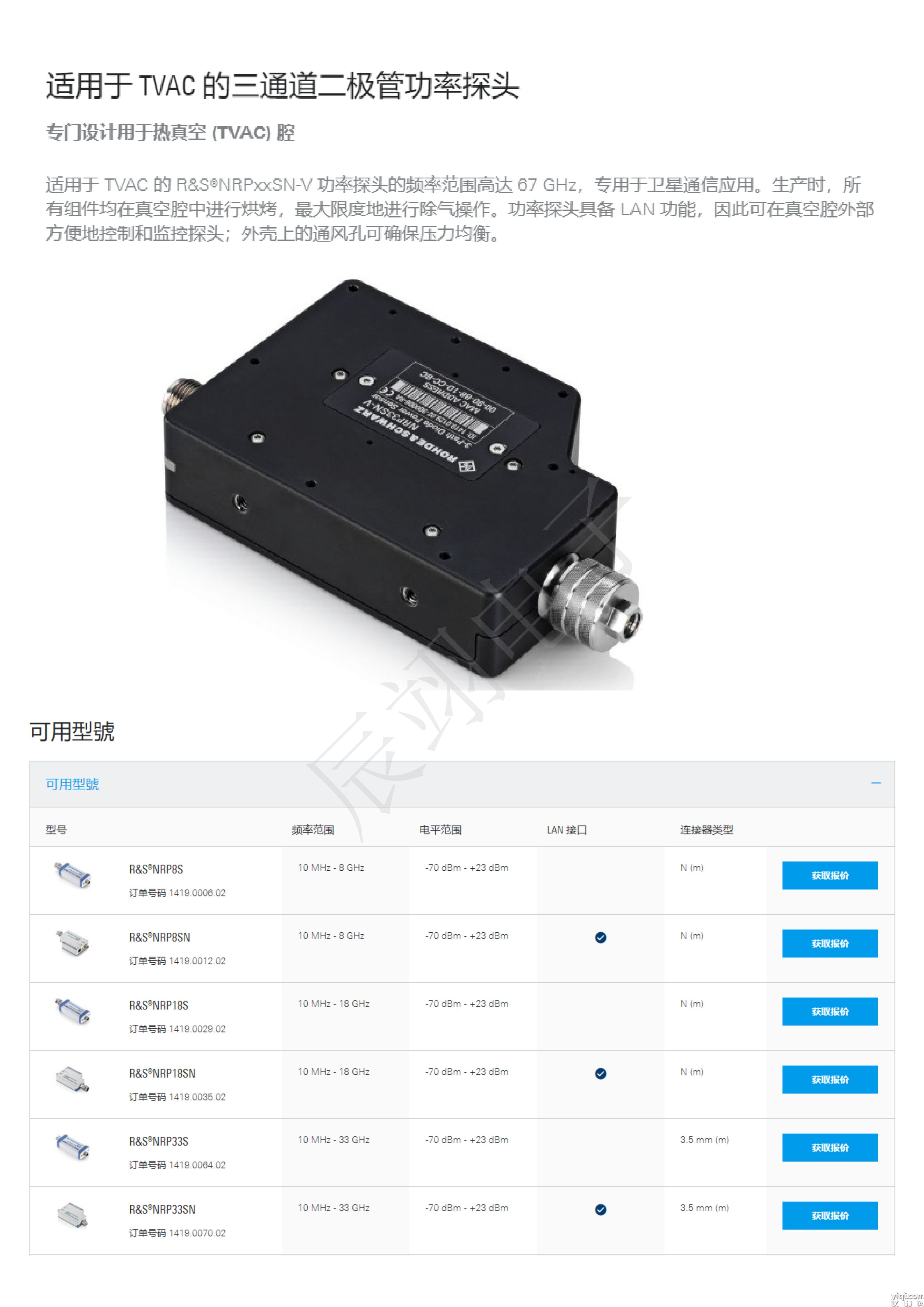 ▶适合 TVAC 的二极管:R&S®NRPxxSN-V系列