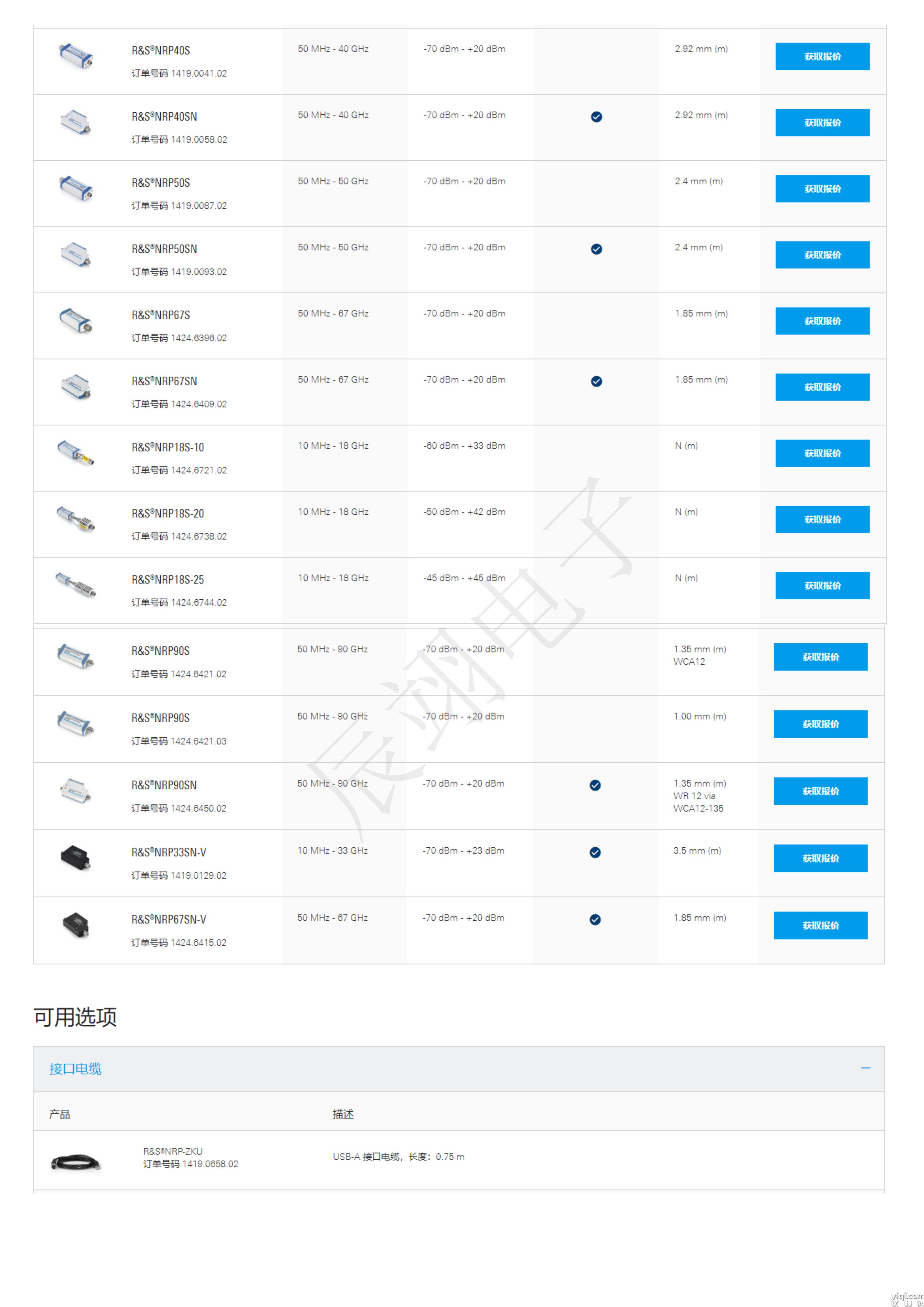 罗德与施瓦茨 RS 三通道二极管功率探头 NRP50SN :50 MHz ~ 50 GHz LAN接口