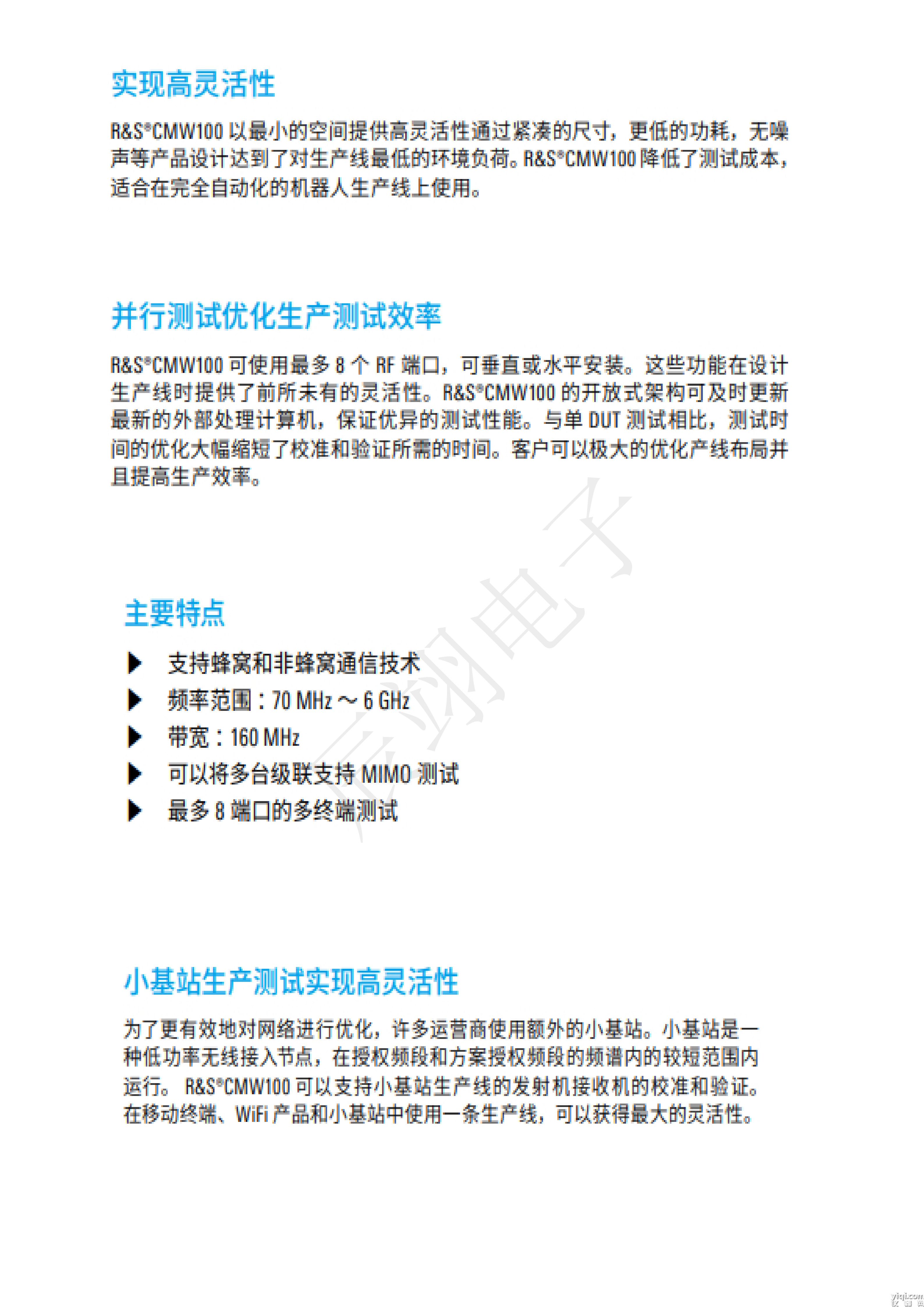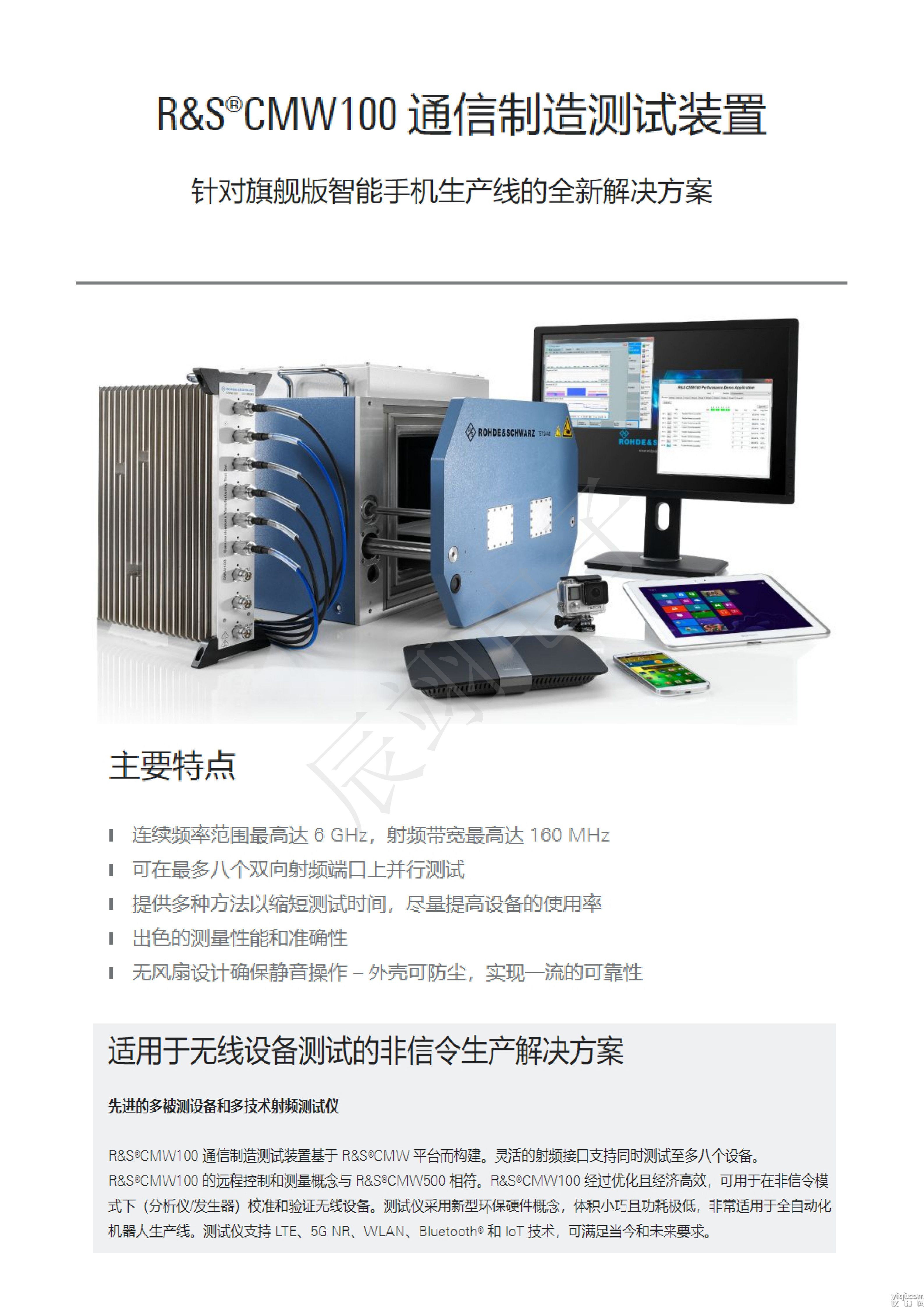 的环境负荷。R&S®CMW100 降低了测试成本,适合在完全自动化的机器人生产线上使用。