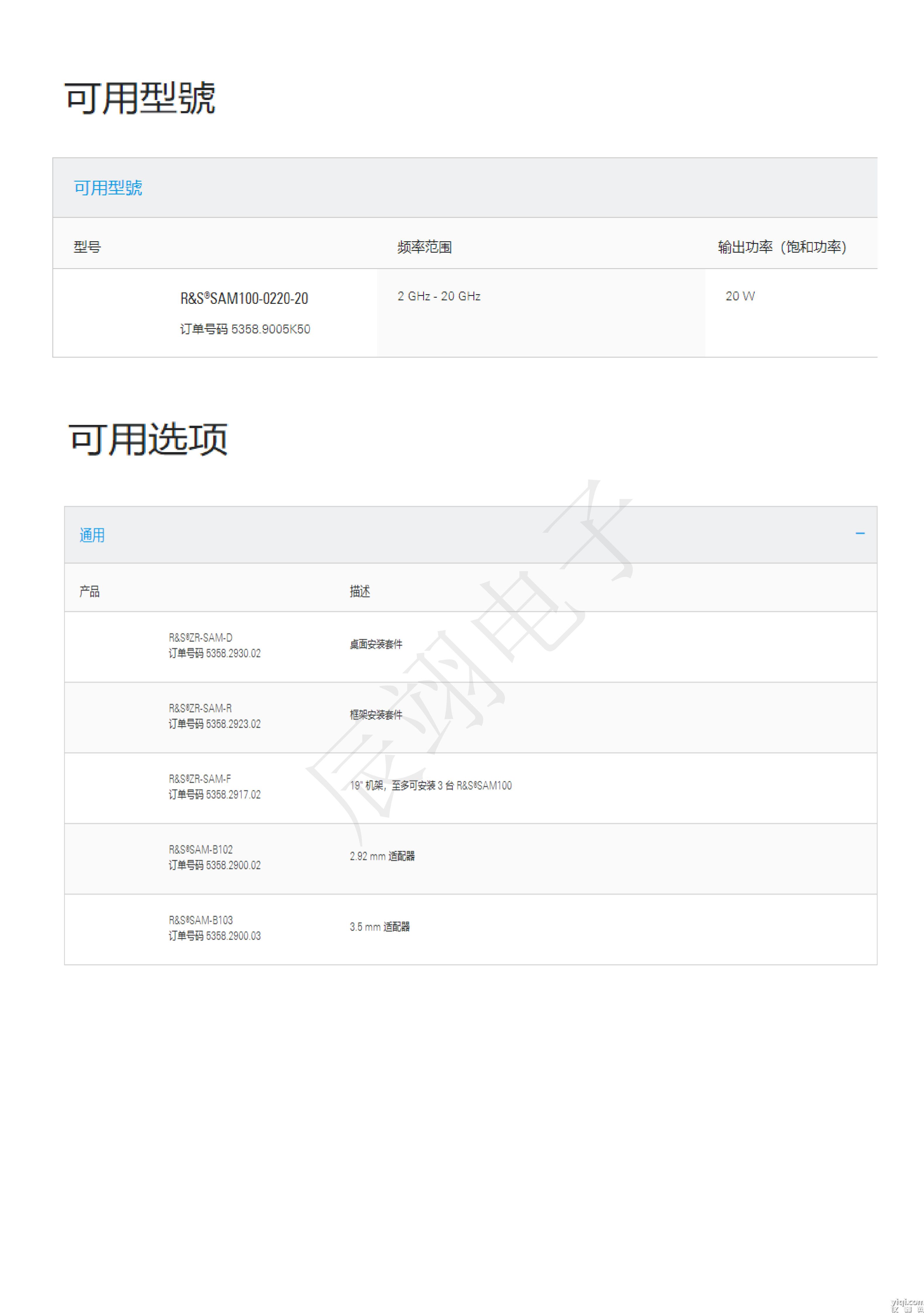 罗德与施瓦茨RS SAM100~20 GHz 系统放大器