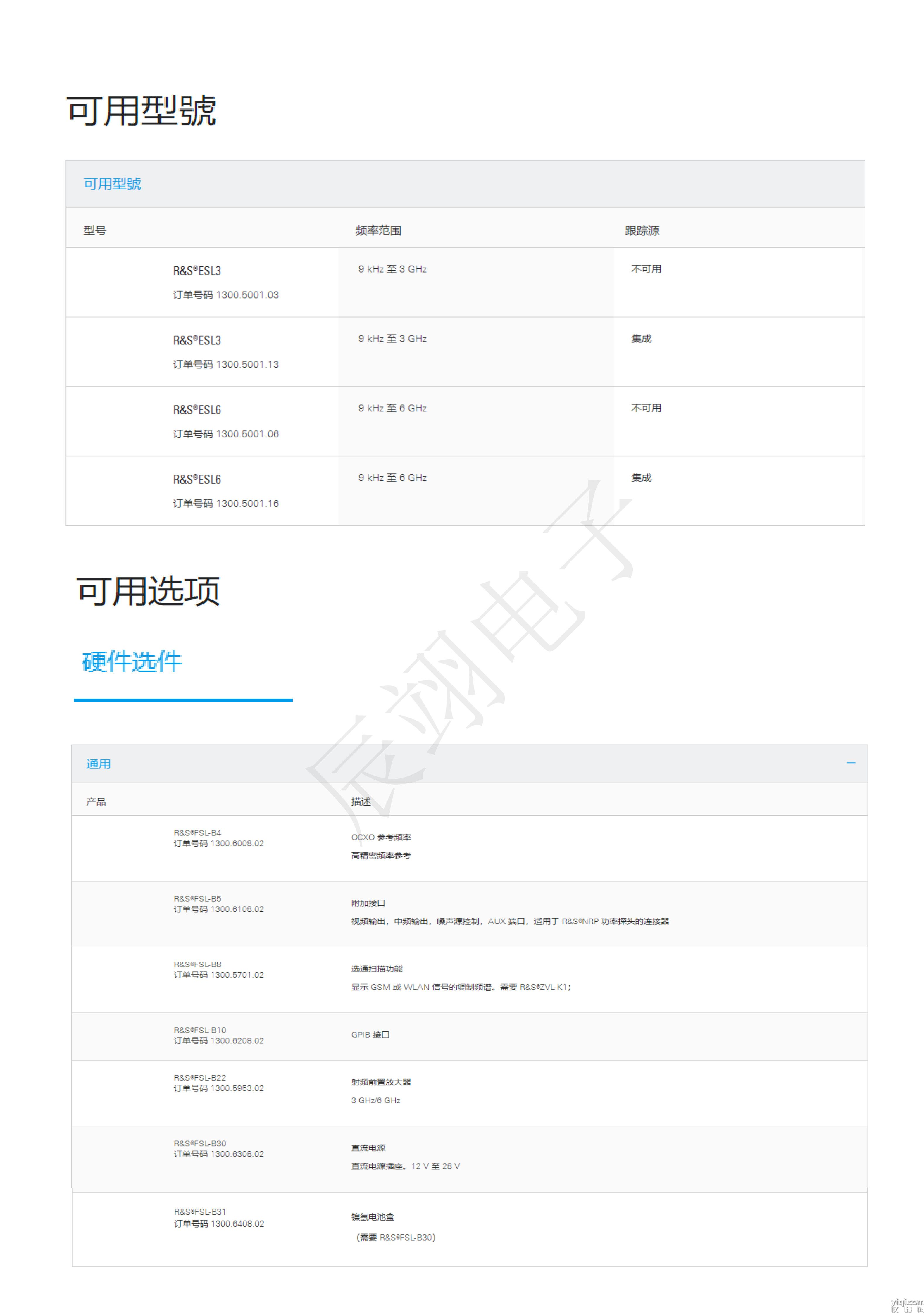 ESL6 9 kHz 至 6 GHz 不可用