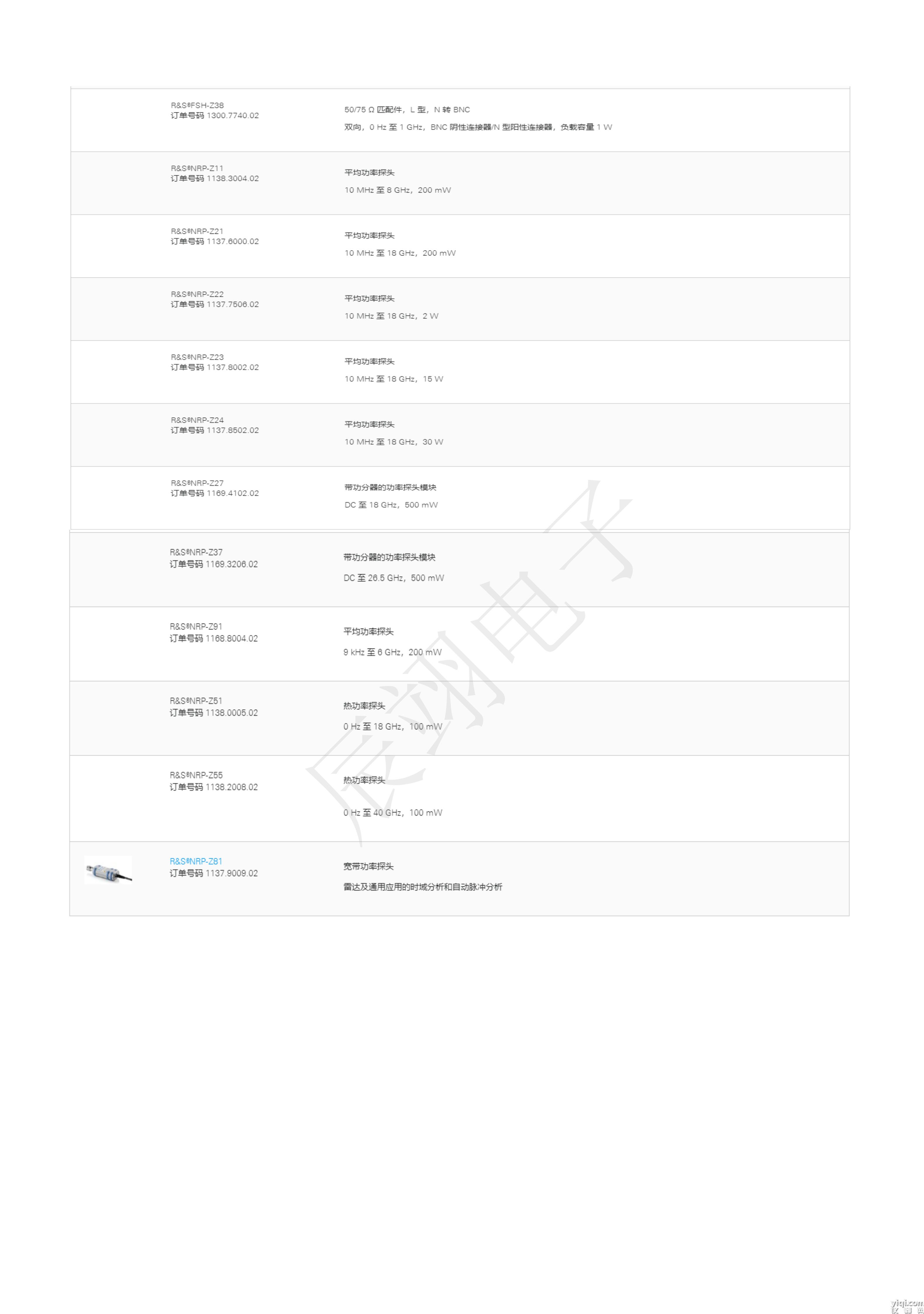型号 频率范围 跟踪源