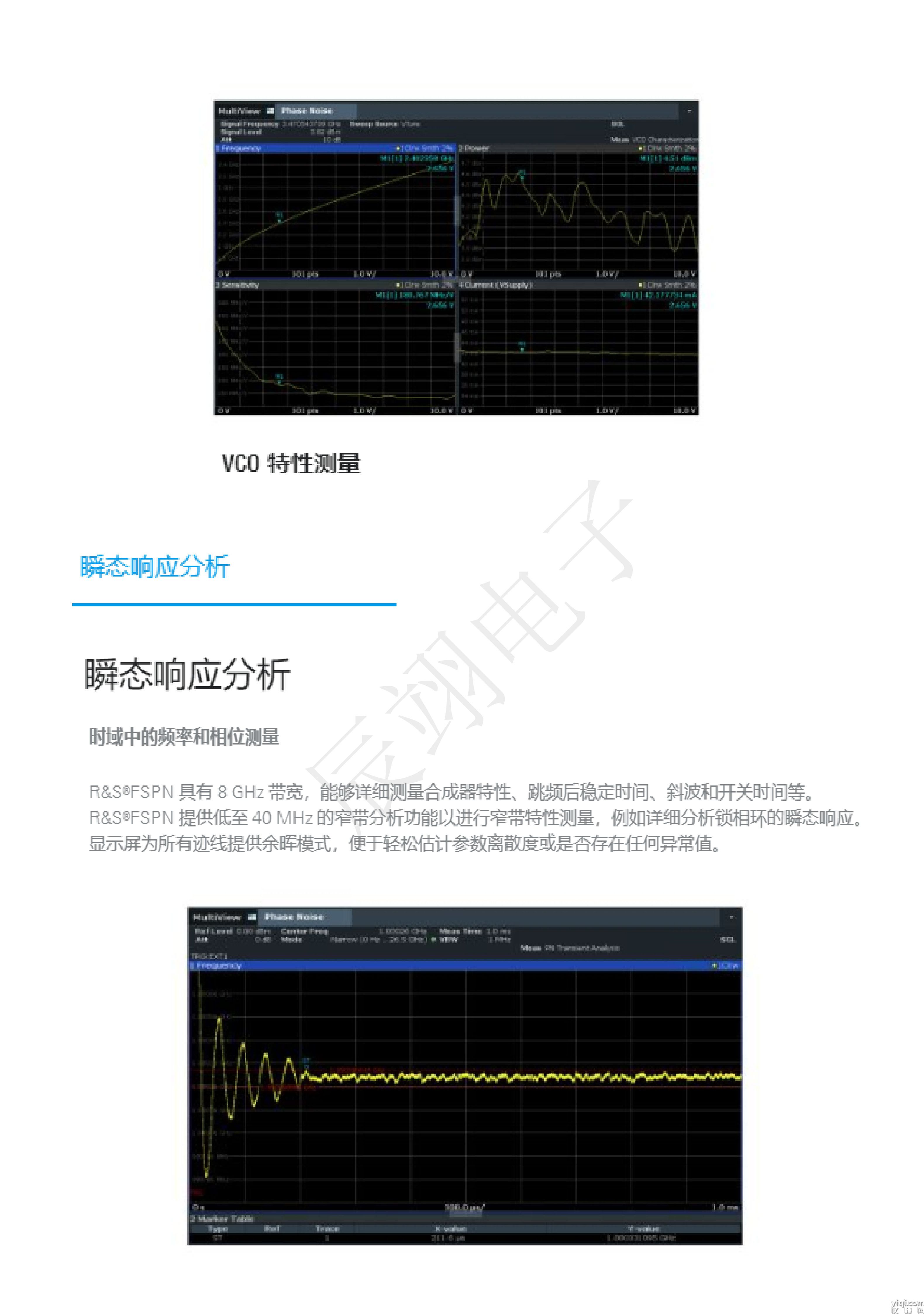 频综和信号源的详细特性评估、特别是瞬态分析(时域宽带频率和相位测量)对于设计工程师来说至关重要。R&S®FSPN 使用