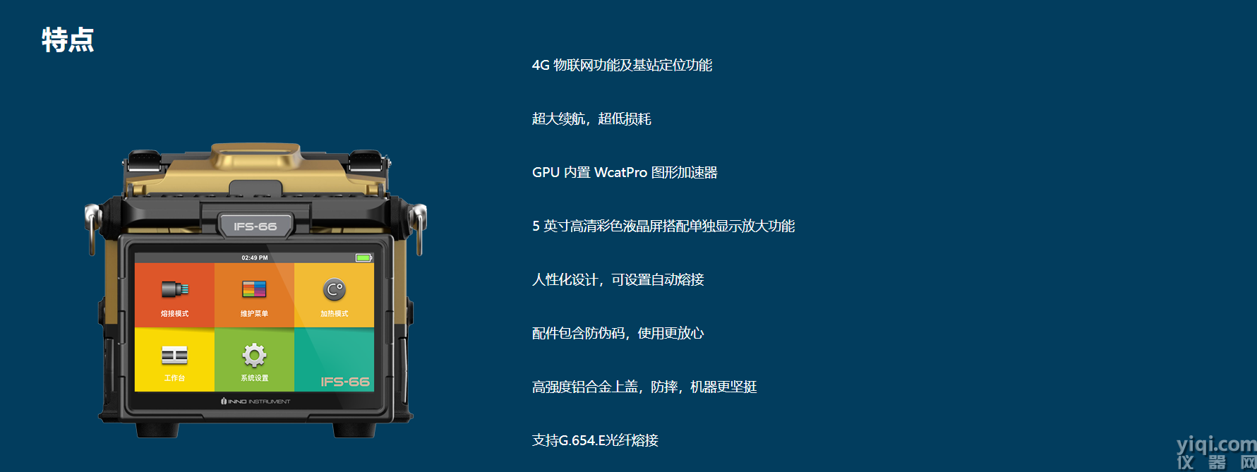 产品详情 IFS-66光纤熔接机产品特点: 采用5英寸彩色液晶屏 具有透明屏幕保护板,安全可靠 纤芯对准(六马达)干线熔接机 采用7000mAh大容量电池FFLBT-7000 6秒熔接,9秒加热 采用USB端口,用户进行系统升级个数据保存操作更加的简便