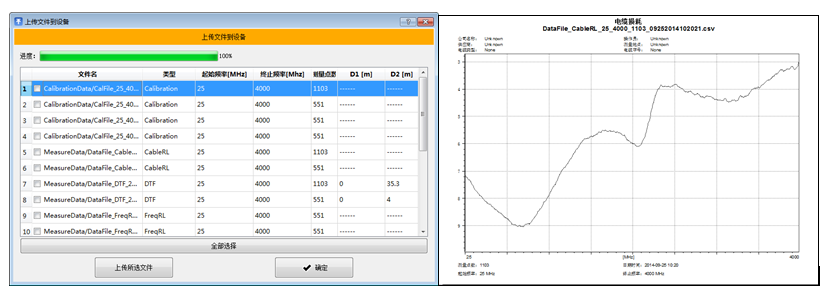 7、仪表支持现场校准电缆并获取电缆参数 用户可以手工输入电缆参数(传播速度;电缆损耗)或者选择已知的电缆类型,也可以在不知道电缆信息和参数时,使用手头现成电缆,利用系统自带的“电缆校准”工具得到准确的电缆参数。为现场测试提供便捷。