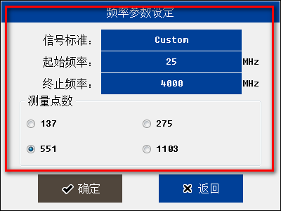 用户可以根据测试需求进行“选择预设的信号标准”或者“自定义频率”。