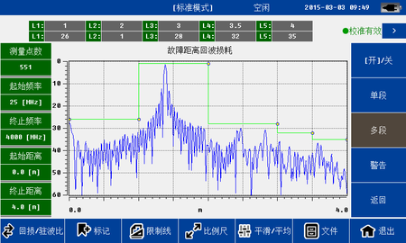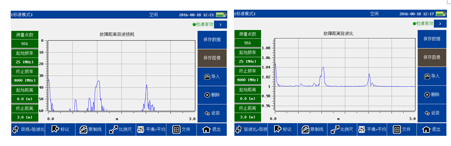5、回损/驻波比即时切换 可同时测试回波损耗和驻波比,并通过点击切换观察结果,大大提高工作效率。