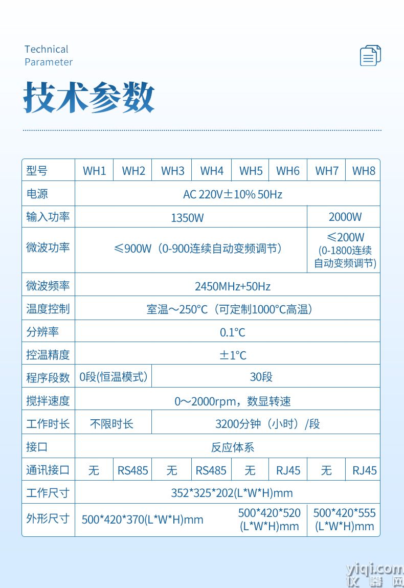 技术指标及说明:| 型 号 | HW-WH2 |