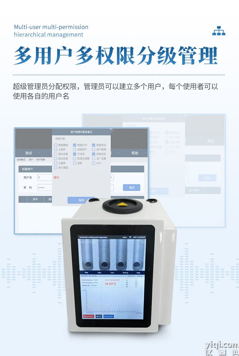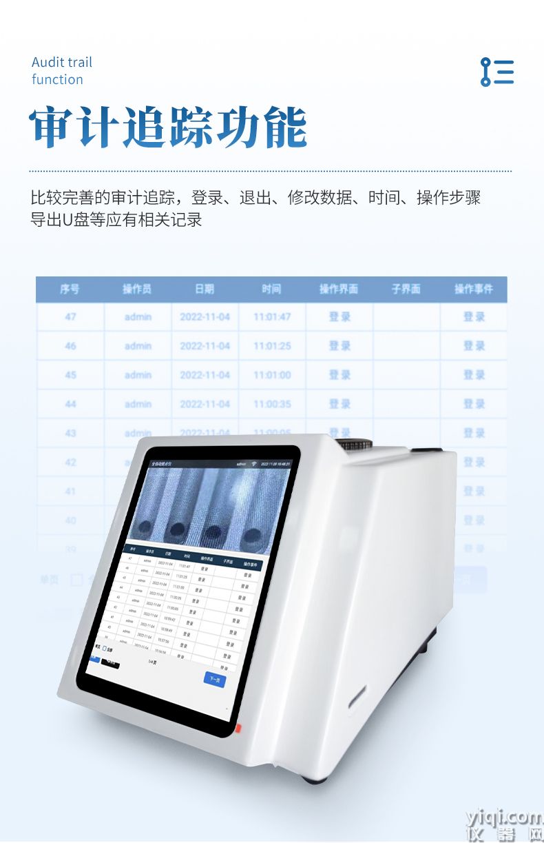 审计追踪:完整版审计追踪和用户分级权限管理,超级管理员可以修改所有人密码和用户名并可追溯,超级管理员可以修改所有操作员权限,用户帐号有禁用和启用两个功能,人员更替暂时不用账户时可以锁定,使用时可以解封,U盘导出PDF和Excel数据防篡改功能。