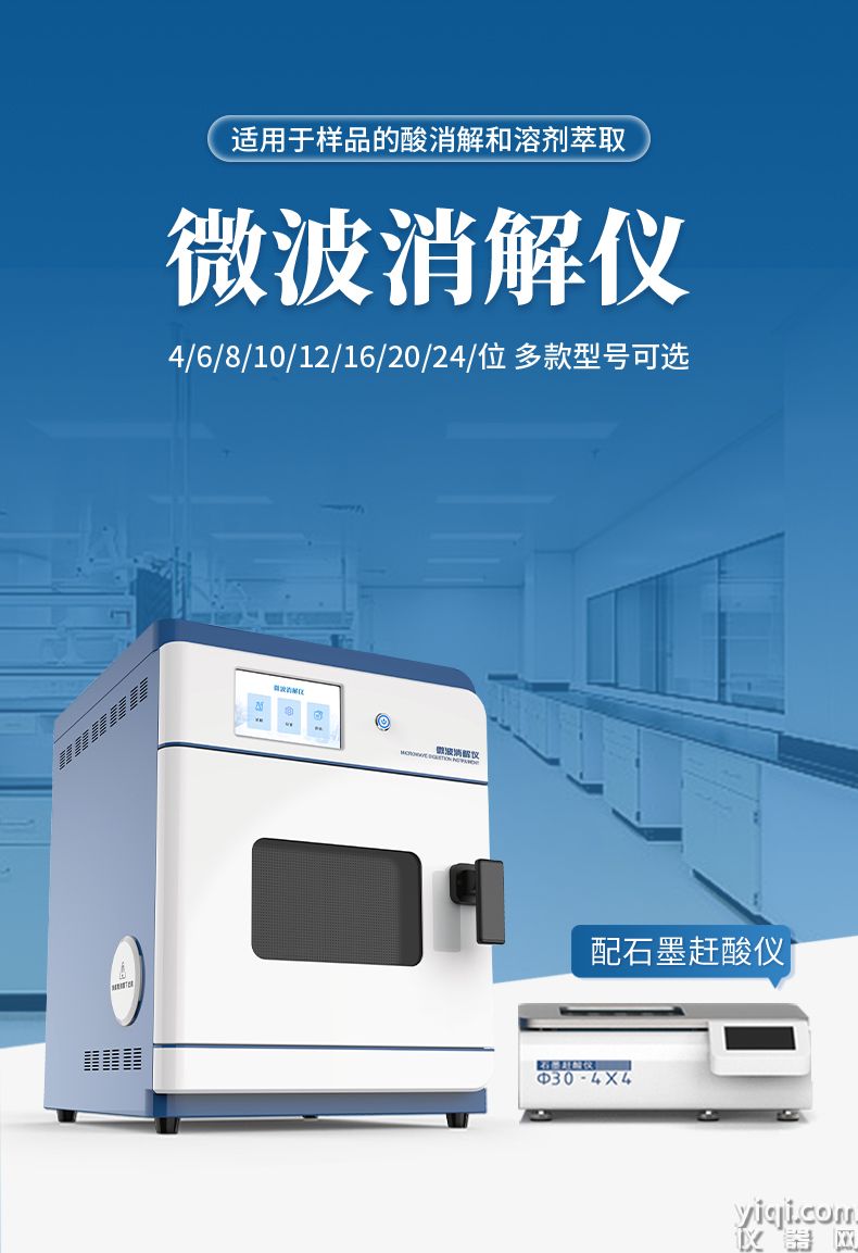 微波消解仪是一种用于样品前处理的设备,通过微波加热技术对样品进行快速、有效的消解。该仪器广泛应用于食品、环境保护、疾病控制、质量监督、商品检验、科研院所等领域,特别适用于各种样品的酸消解和溶剂萃取。