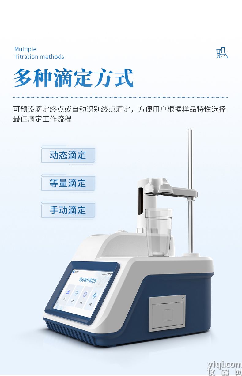 产品优势:1、设备支持电位滴定和pH值测量;用户选择不同电极可进行酸碱滴定、氧化还原滴定、沉淀滴定、络合滴定等多种滴定和pH测量;