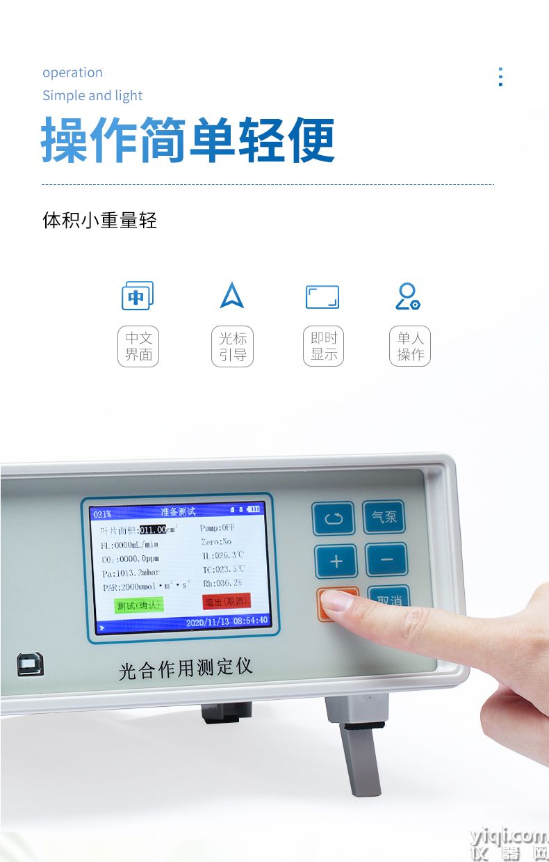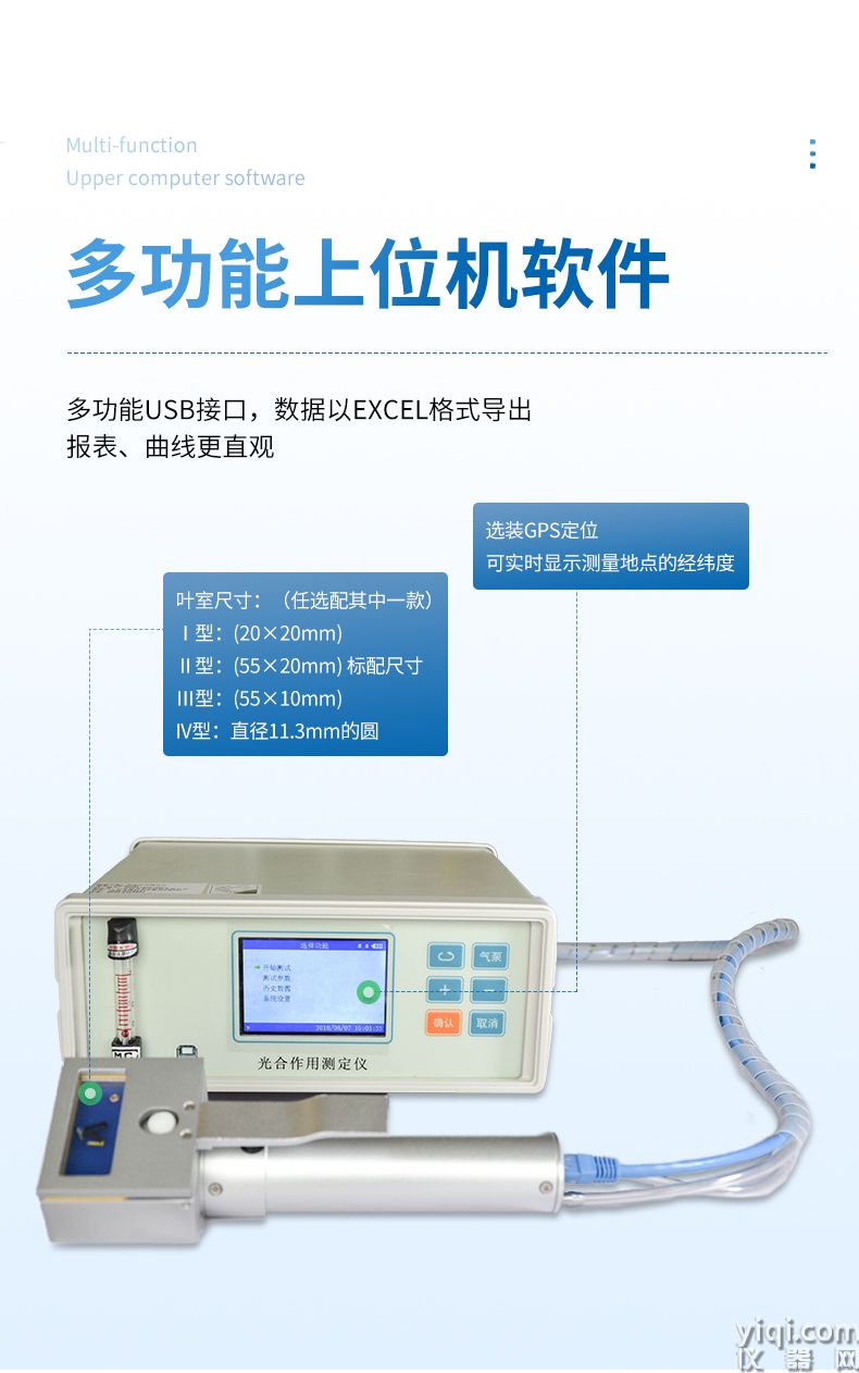 光合作用测定仪采用闭路测量方法可以测定气体CO2浓度、空气温湿度,植物叶片温度,光强,气体流量等要素,并计算出植物的光合速率、蒸腾速率、细胞间CO2浓度、气孔导度、水分利用率等光合作用指标,在生物、农学、园艺、林业、昆虫、微生物、动物等许多专业的实验课程中有广泛的利用前景.