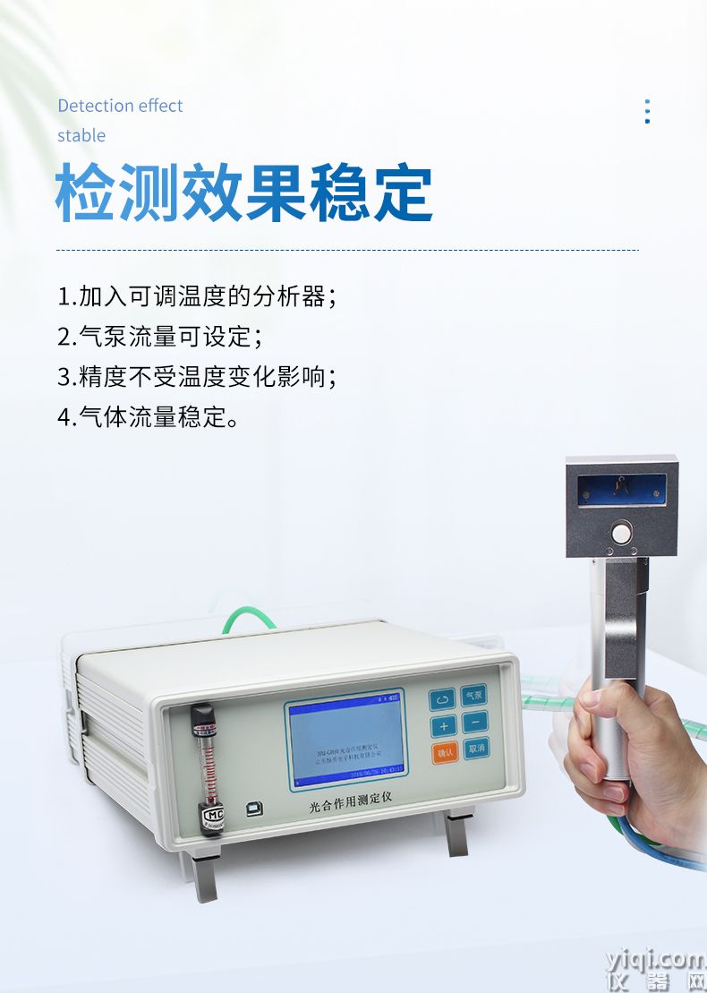 稳定性:加入了温度调节的双波长红外二氧化碳分析器,二氧化碳测量精度不受温度变化影响,而且具有稳定、精度高,反映灵敏等特点,1秒钟之内就可以完成二氧化碳差值采集。气泵流量可根据需要设定,可测量不同气体流量下对光合作用的影响,气体流量稳定。