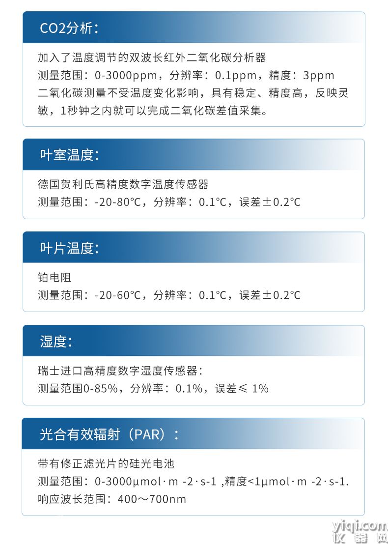 光合作用测定仪测量项目:非扩散式红外CO2分析