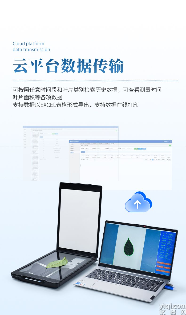 10)4G无线传输:测量数据可实时上传至云平台,可查看测量时间、叶片面积等数据,可对不同参数做折线图分析,支持数据以EXCEL表格形式导出,支持数据在线打印,可根据选择的时间段展示数据、支持数据以表格、折线图等分析、在线下载。(此功能只限G型)