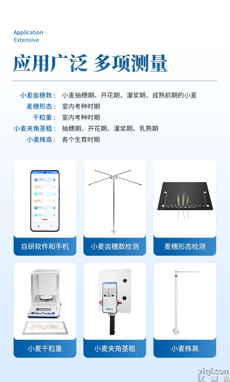 3)夹角茎粗测量仪适配小麦、水稻等多作物,快速获取茎秆形态参数;