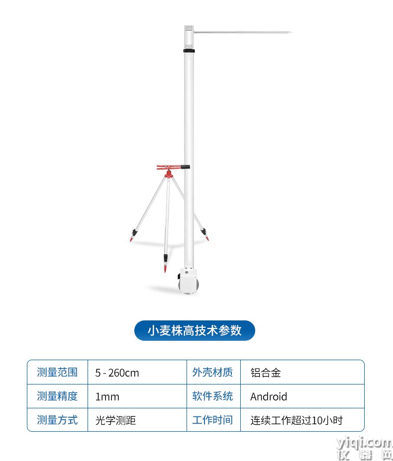 5.株高(1)简介小麦株高测量仪是专为农业领域设计的一种便携式、快速响应的农作物高度测量工具。采用内置光学测距技术,并通过内置算法进行现场分析,能够实时获取高度数据。