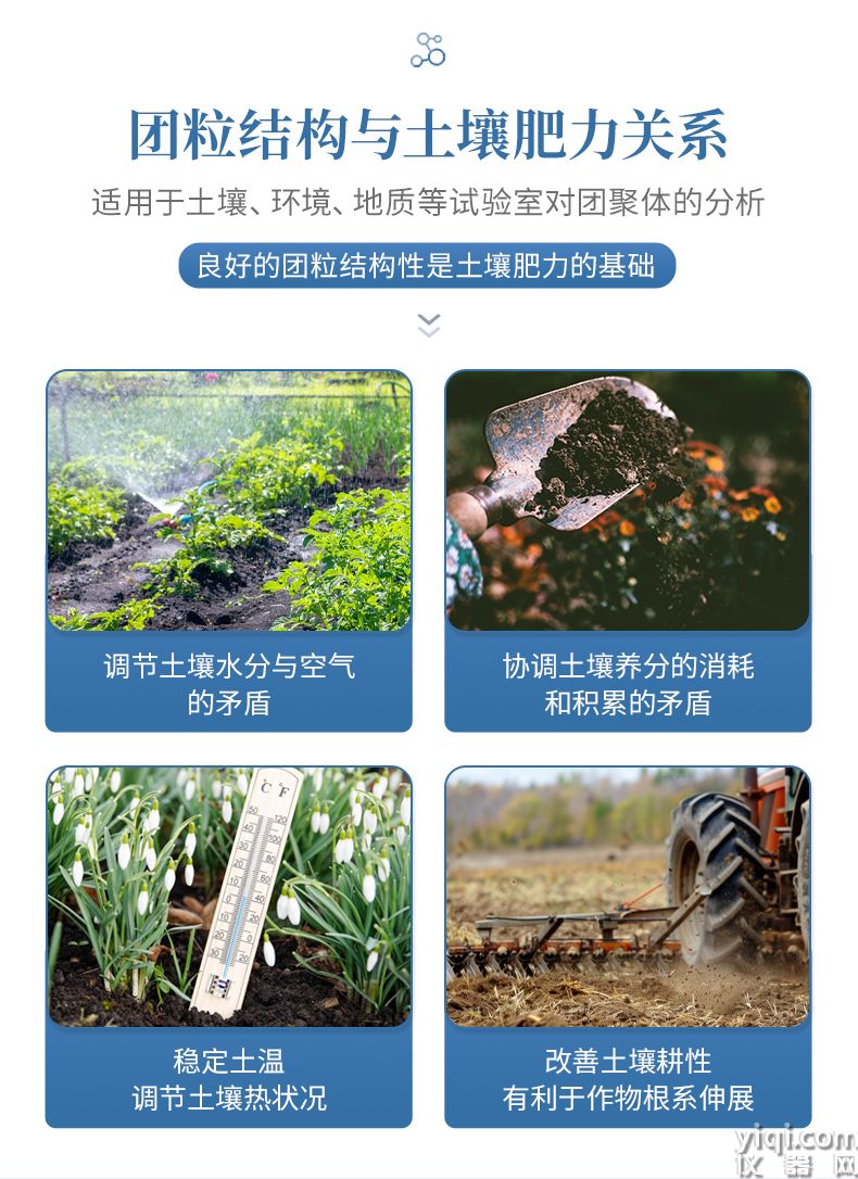 1、土壤团粒结构对土壤肥力起着重要作用。良好的团粒结构体一般应具备三方面的性质:具有一定的大小,过大或过小都对形成适当的孔隙比例不利;具有多级孔隙,大孔隙可通气透水,小孔隙保水保肥;具有一定的稳定性,即水稳性、机械稳性和生物学稳定性。良好的团粒结构性是土壤肥力的基础,团粒结构与土壤肥力的关系主要表现在以下几个方面:调节土壤水分与空气的矛盾;协调土壤养分的消耗和积累的矛盾;稳定土温,调节土壤热状况;改善土壤耕性,有利于作物根系伸展。土壤团粒分析仪适用于土壤、环境、地质等试验室对团聚体的分析。