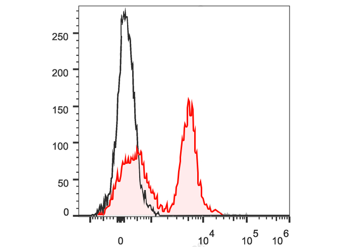 | 建议稀释比例 | Volume per test: 5μL. Each lot of this antibody is quality control tested by flow cytometric analysis. The amount of the reagent is suggested to be used 5 µL of antibody per test (million cells in 100 µL staining volume or per 100 µL of whole blood). Please check your vial before the experiment. Since applications vary, the appropriate dilutions must be determined for individual use. |