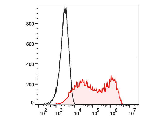 | 建议稀释比例 | Volume per test: 5μL. Each lot of this antibody is quality control tested by flow cytometric analysis. The amount of the reagent is suggested to be used 5 µL of antibody per test (million cells in 100 µL staining volume or per 100 µL of whole blood). Please check your vial before the experiment. Since applications vary, the appropriate dilutions must be determined for individual use. |
