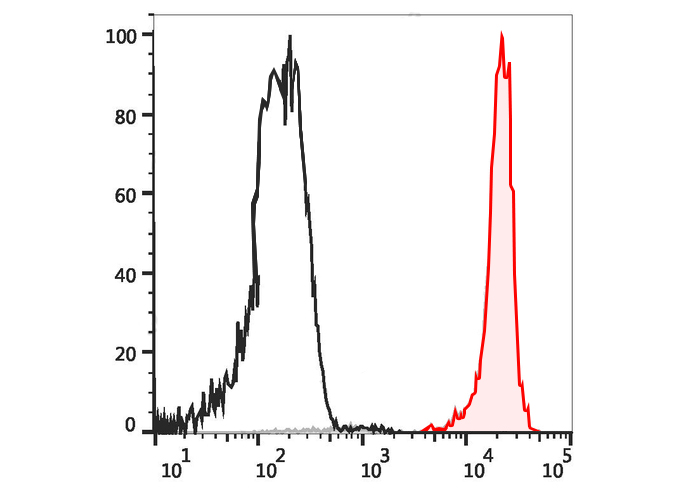 | 建议稀释比例 | Volume per test: 5μL. Each lot of this antibody is quality control tested by flow cytometric analysis. The amount of the reagent is suggested to be used 5 µL of antibody per test (million cells in 100 µL staining volume or per 100 µL of whole blood). Please check your vial before the experiment. Since applications vary, the appropriate dilutions must be determined for individual use. |