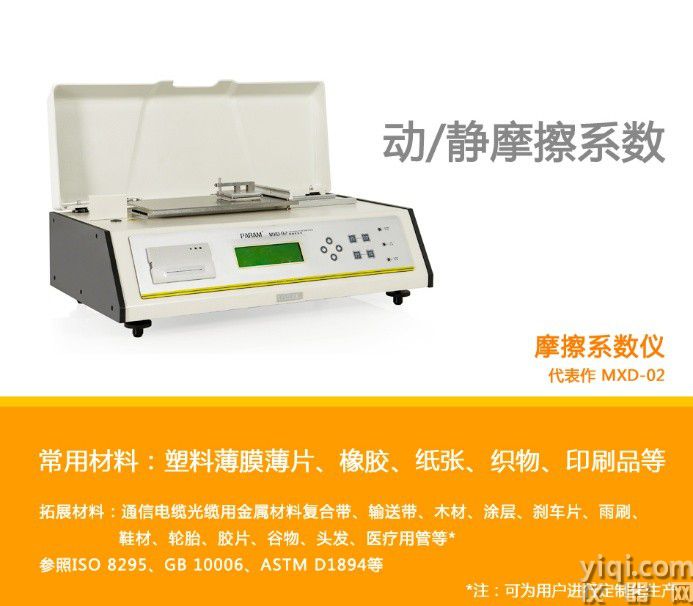 MXD-02纸箱表面摩擦系数仪 动静摩擦系数测量仪适用于测量塑料薄膜和薄片、橡胶、纸张、纸板、编织袋、织物风格、通信电缆光缆用金属材料复合带、输送带、木材、涂层、刹车片、雨刷、鞋材、轮胎等材料滑动时的静摩擦系数和动摩擦系数。通过测量材料的滑爽性,可以控制调节材料生产质量工艺指标,满足产品使用要求。另外还可用于化妆品等日化用品的滑爽性能测定。