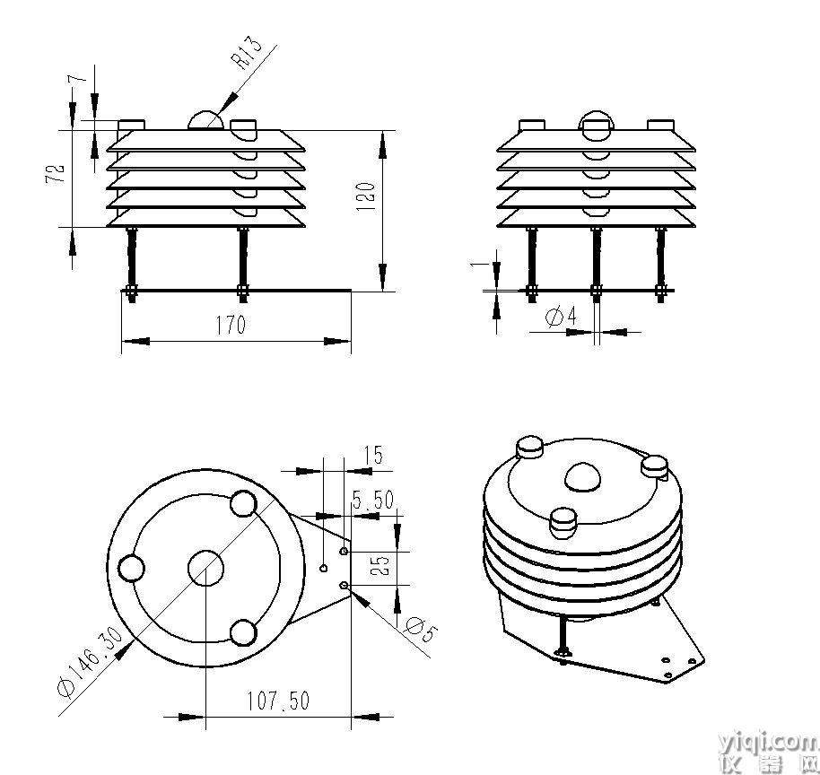 1.本光学雨量传感器采用纯正弦红外光源、内置窄带滤光片、感雨面达到78平方厘米,可高精度测量降雨量、不受高强度太阳光等光线影响。高透光率感雨罩不影响直射的太阳光,可兼容内置其他光学传感器,如光照、总辐射、紫外线传感器等 2.测量精度高,量程宽,稳定性能好,低功耗,抗外界干扰能力强 3.可全天候工作,不受天气变化的影响,精确到秒的降雨时长监测 4.免维护,雨滴接触面为弧形设计结构,不存储雨水 5.安装后带有自动水平校准功能,无需现场校准 6.低功耗采集器:静态功耗小于1mA 7.支持modbus485传感器扩展 8.太阳能充电管理MPPT自动功率点跟踪 9.短信报警,超限后向指定