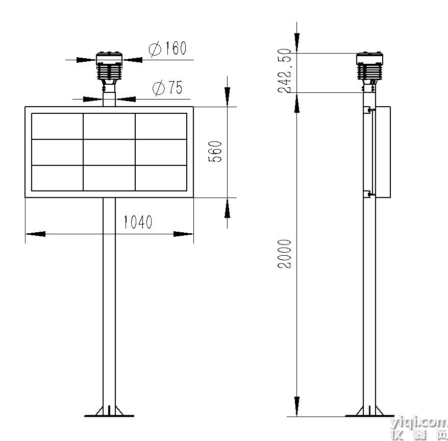 12、立杆:碳钢单立柱,由2根1.5米立杆法兰盘对接而成,可耐受15级强台风
