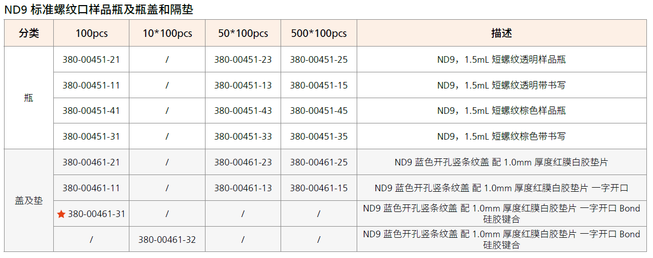 | 产品特点 ■ 通用性强,适合多种自动进样器; ■ 多种包装规格可选,质优价廉; ■ 螺口盖垫密封性优异,可重复密封; ■ 瓶盖垫符合RoHS,无重金属; ■ 严格质控,批次一致性; ■ 瓶身采用全进口I型硼硅玻璃,盖垫采用全进口PTFE/硅胶盖垫,质量保障。 | ![]() |